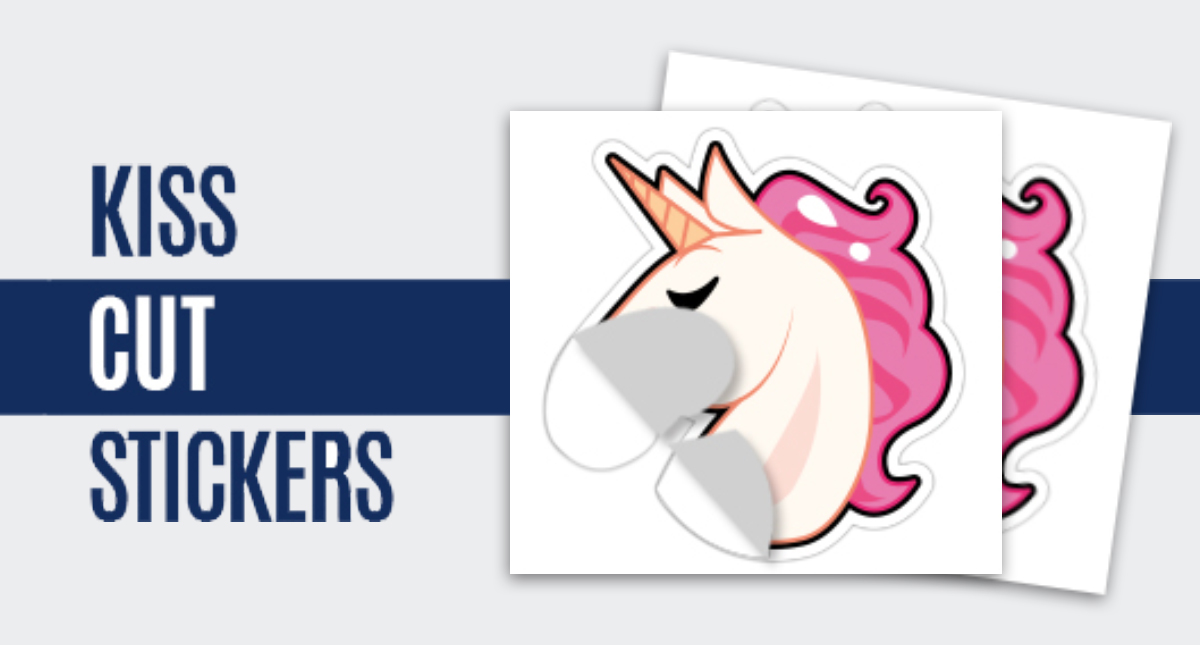 /Custom Kiss Cut Stickers are made from a durable, scratch-resistant and weatherproof adhesive vinyl. They offer versatility and convenience since the graphics can have almost any shape or configuration. Kiss Cut Stickers are very easy to pull off the backing and the sticker’s edges stay protected. They are very popular for branding, labeling projects, and ideal to give out at events.